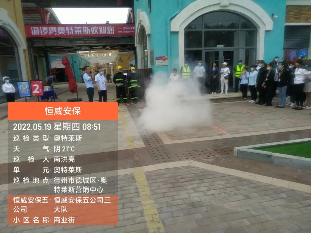 為增強安保人員消防意識,提高火災應急處突、疏散能力,德州市恒威安保服務有限公司五公司按照支部書記、總經理王新衛要求,于5月19日在奧特萊斯開展消防演練活動。其中有10余安保人員參加此次演習活動,客戶單位及商鋪人員預計30余人觀摩了此次活動。