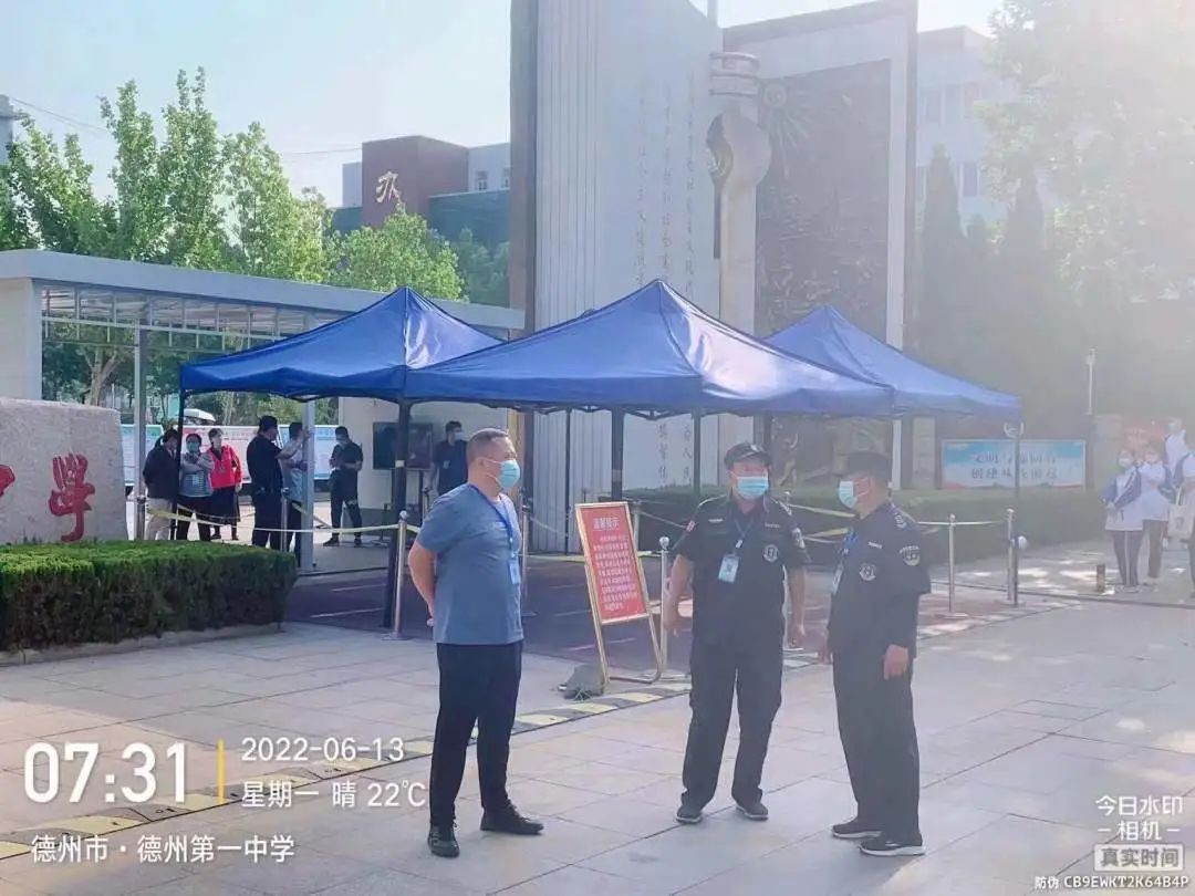 期間,各考點安保負責人趙洪臣、孫輝國、邱洪冰、賈義軍、候佃榮等主管領導及執勤隊員一早提前到達崗位,配合現場工作人員做好證件查驗,嚴禁無關人員混入考場,同時防止人員擁堵、讓考生安全。并積較協助公安機關通過定點執勤和動態巡邏相結合的方式,對轄區內各考點及周邊開展巡邏,引導學生有序入場,維護考場周邊秩序,讓考生進場安全暢通。