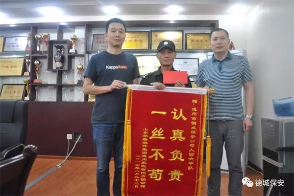 8月28日上午,山東華魯恒升集團德州熱電有限責任公司安保部段主任在派駐保安執勤班班長王清池的陪同下,來到德州市恒威安保服務有限公司,感謝在8.17特大暴雨中及時排除重大險情的三名保安隊員。贈送“一絲不茍、認真負責”錦旗一面、表揚信一封。