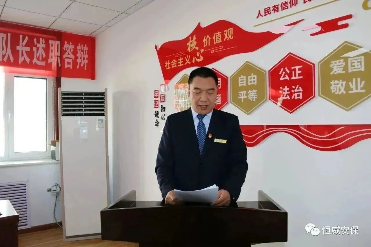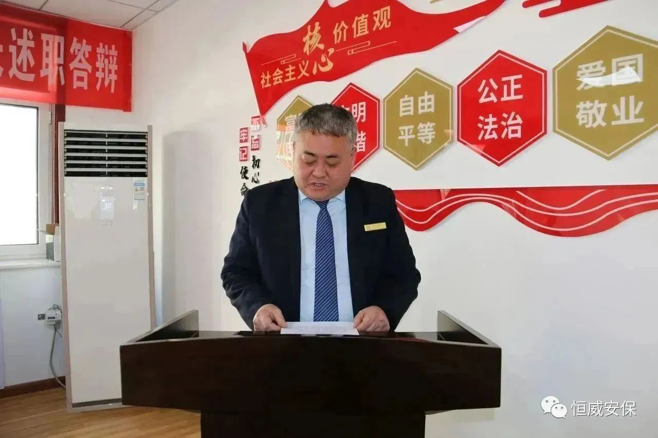 為進一步強化中層管理干部責任意識,促使管理隊伍更好的謀劃工作思路,研究創新舉措,推動公司各項工作取得更好的成效。12月22日上午,德州市恒威安保服務有限公司舉行部門承包責任書簽字儀式暨2023年度大隊長述職答辯,公司黨支部書記、總經理王新衛,各部室,分公司負責人及大隊長參加會議。會議由副總經理張玉濤主持。