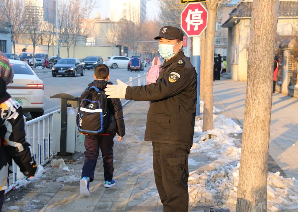 開學當天,各學校執勤班組保安員嚴格落實“護學崗”制度,采取定人、定時、定崗、定責勤務機制,始終保持高度重視和警惕性,并結合校園實際,合理安排護學力量,加強交通疏導與秩序維護,并配合學校做好人員進出安全檢查,為學生、家長的安全出行營造良好的交通環境。