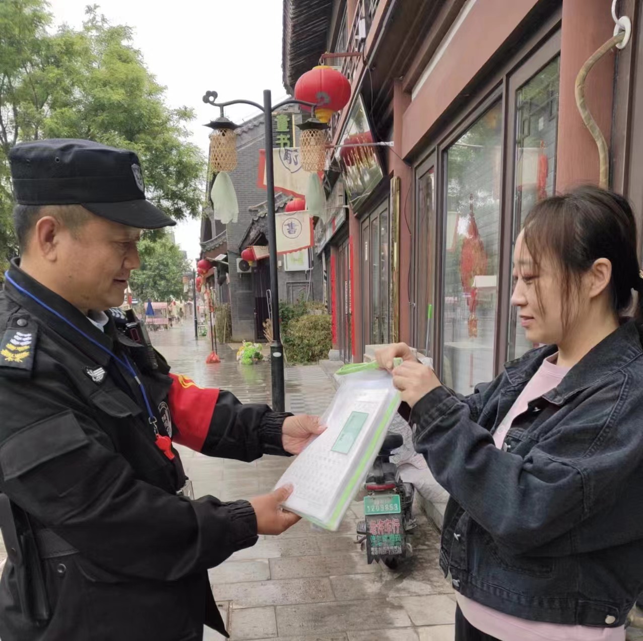執勤過程中,中隊長喬連方撿拾學生用品一套,為了不耽誤學生上課,經多方努力,終于聯系到其家長,及時歸還物品,家長連連道謝,并稱贊:“最近古街的保安大哥的服務真的提升了很多,貼心了許多,更暖心了許多。”