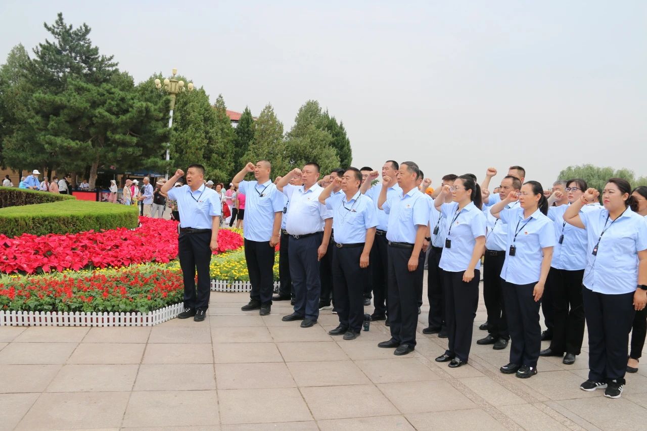西柏坡紀(jì)念館廣場,面對鮮紅的黨旗,在黨支部副書記張玉濤的引領(lǐng)下,黨員們紛紛舉起右拳,莊嚴(yán)宣誓,“我志愿加入中國共產(chǎn)黨……”聲音鏗鏘,誓言豪邁,這一誓言不僅彰顯了全體黨員對黨的堅定信仰,更承載了他們對于黨的莊嚴(yán)承諾與責(zé)任擔(dān)當(dāng)。