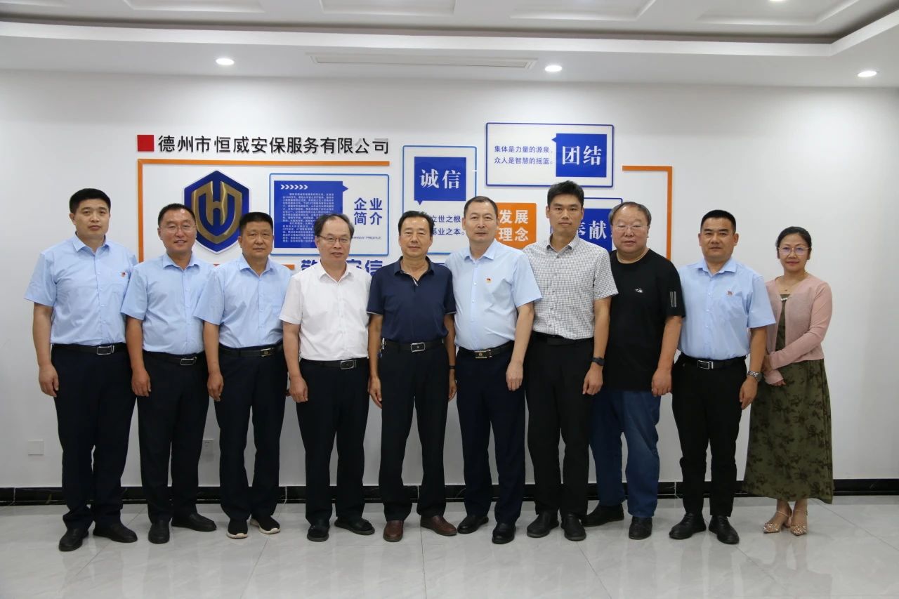 7月9日下午,德州市誠信文化建設團隊蒞臨德州市恒威安保服務有限公司調研并指導工作。山東誠信文化和綠色發展主題系列電影總策劃總制片人、德州市發改委原二級調研員高洪玉,德州市發改委信用科科長李佳林,德州市誠信文化促進會常務副會長、德州學院教授、文化學者黃金元,知名編劇、德州市電影家協會主席劉曉東,德州市誠信文化促進會秘書長,德州市電影家協會秘書長王玉心。公司黨支部書記、總經理王新衛、副總經理王洪林、高印東陪同調研。