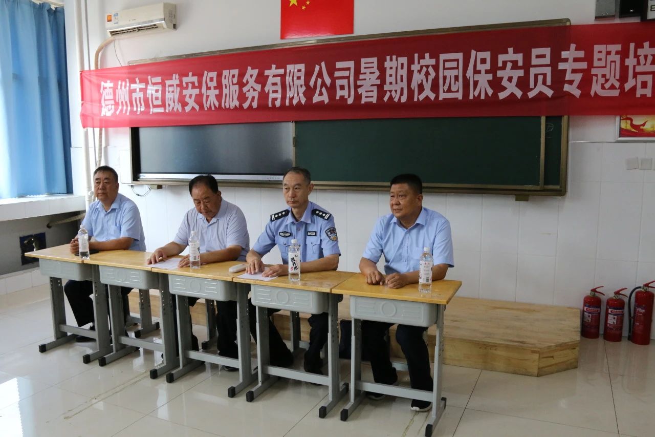 為切實(shí)提升校園保安隊(duì)伍整體素質(zhì),進(jìn)一步提高校園保安隊(duì)伍的安全防范意識(shí)和應(yīng)急處置能力,扎實(shí)筑牢校園安全防線。8月2日,德州市恒威安保服務(wù)有限公司組織舉辦2024年暑期校園保安專題培訓(xùn)活動(dòng)。德州市公安局德城分局治安大隊(duì)姚汝強(qiáng)隊(duì)長、德城區(qū)教體局于會(huì)燕主任及60余名恒威校園保安員參加了活動(dòng)。