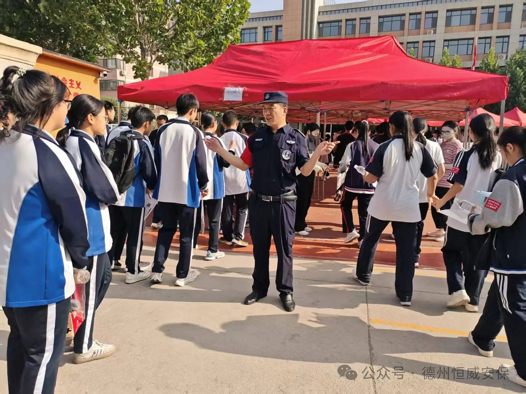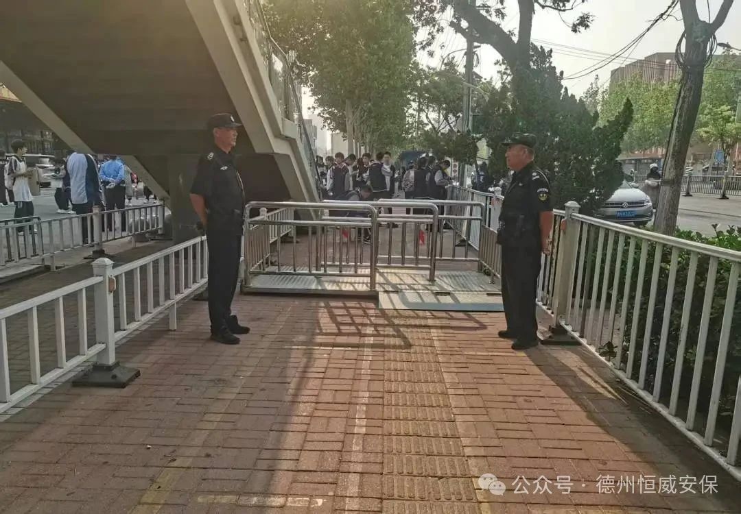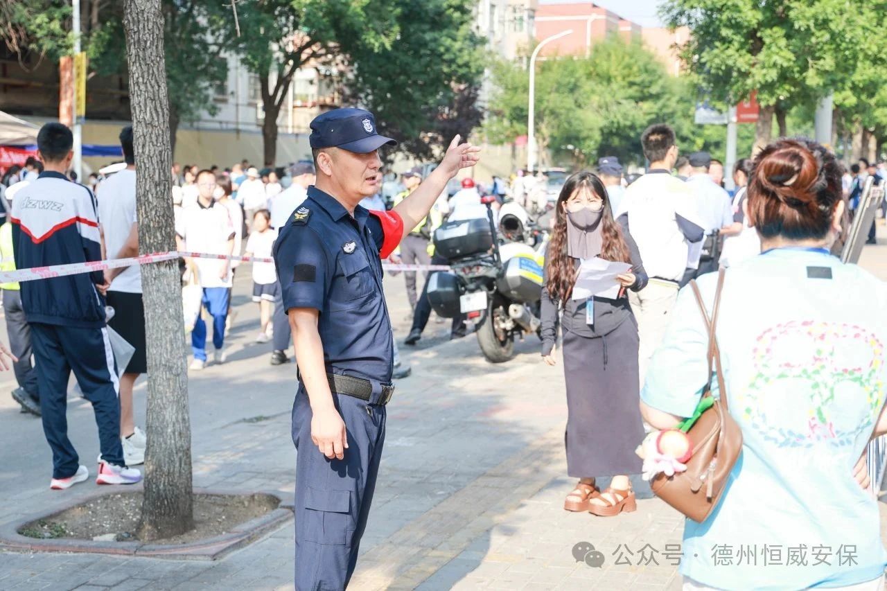為了讓考生們能夠心無旁騖、安心應考,公司充分總結此前高考護航的成功經驗,仔細梳理流程,查找潛在風險,對中考安保工作方案進行了全面優化和細化升級。他們將“細致”與“溫度”融入工作的每一個環節:考點入口及周邊道路,他們耐心疏導車輛,確保交通順暢有序,避免擁堵影響考生赴考;校門內外,他們微笑引導考生快速、安全入場;面對陪考家長和往來群眾,他們熱情提供咨詢、指引等便民服務;考場內外秩序維護更是重中之重,他們目光如炬,時刻警惕,為考試環境筑起一道堅實的安全防線。