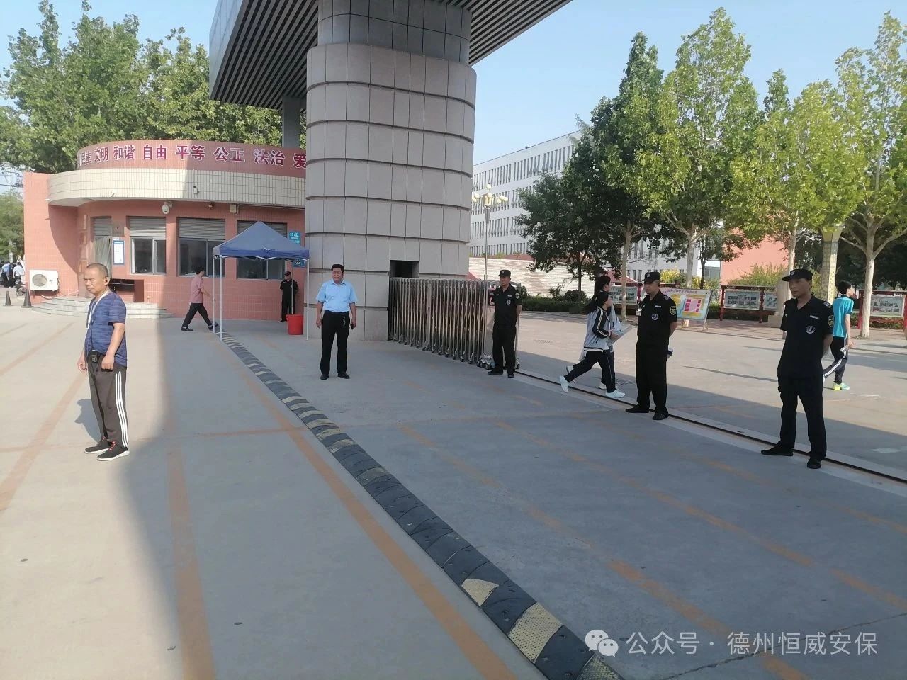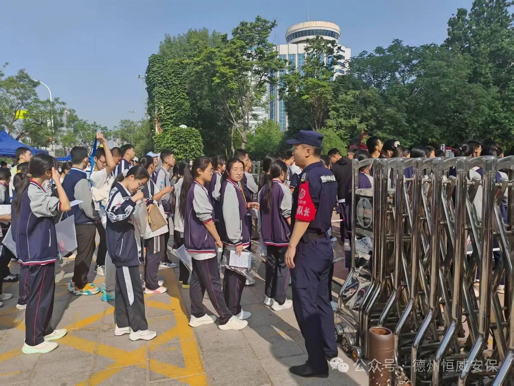 整個中考期間,全體恒威保安員始終如一,以高度的紀律性和敬業精神,詮釋著責任與擔當。他們頭頂烈日,汗流浹背,卻始終堅守崗位,寸步不離;他們嚴守紀律,恪盡職守,一絲不茍地執行著安保任務;他們堅持文明執勤,規范用語,用真誠的微笑和貼心的服務化解焦慮;他們熱情周到,積極為有需要的考生和家長提供幫助。