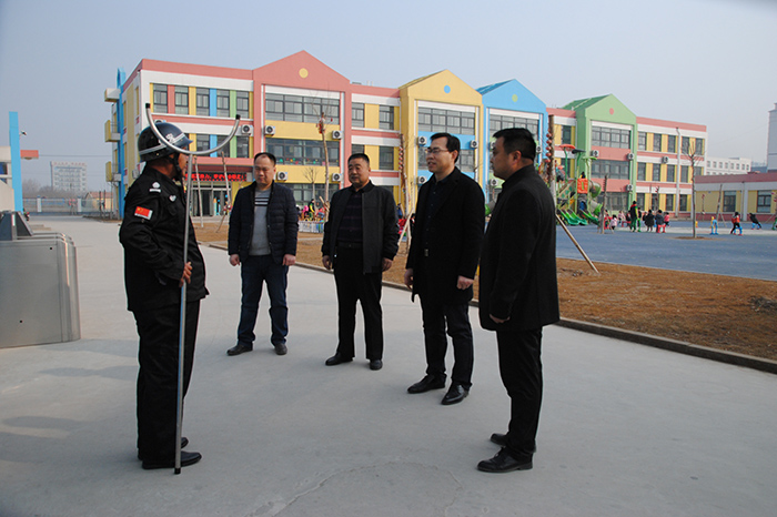 2月28日上午,德州市恒威安保服務有限公司慶云分公司總經理李建德、大隊長李雙陪同德州市慶云縣教育局安全科孫科長、楊科長視察指導我公司承擔的高校、中小幼校園安保工作。