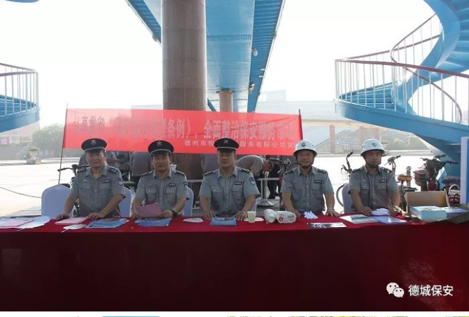 根據公安部、省公安廳統一部署要求,為認真貫徹落實黨中央“不忘初心、牢記使命”主題教育活動決策部署和公安部黨委關于開展“踐行新使他、忠誠保大慶”實踐活動及各級領導要求,為國慶70周年慶祝營造良好的市場環境和社會氛圍,德州市恒威安保服務有限公司300余人于7月24日在中心廣場舉行“全市保安行業主題宣傳”活動。