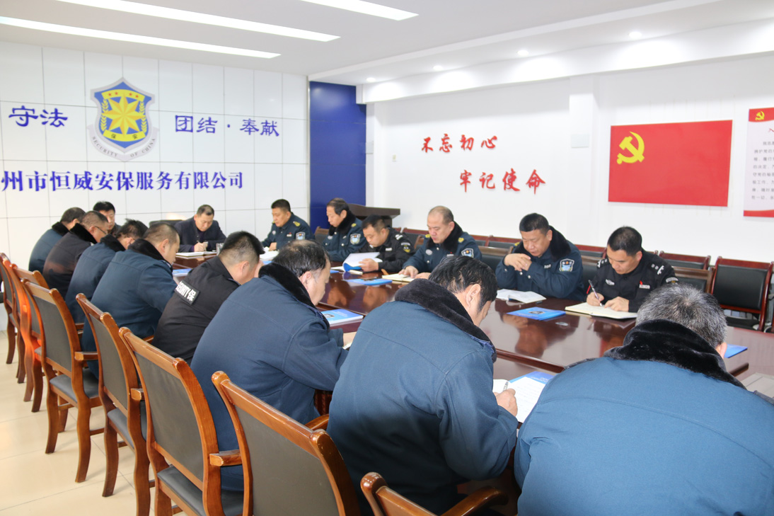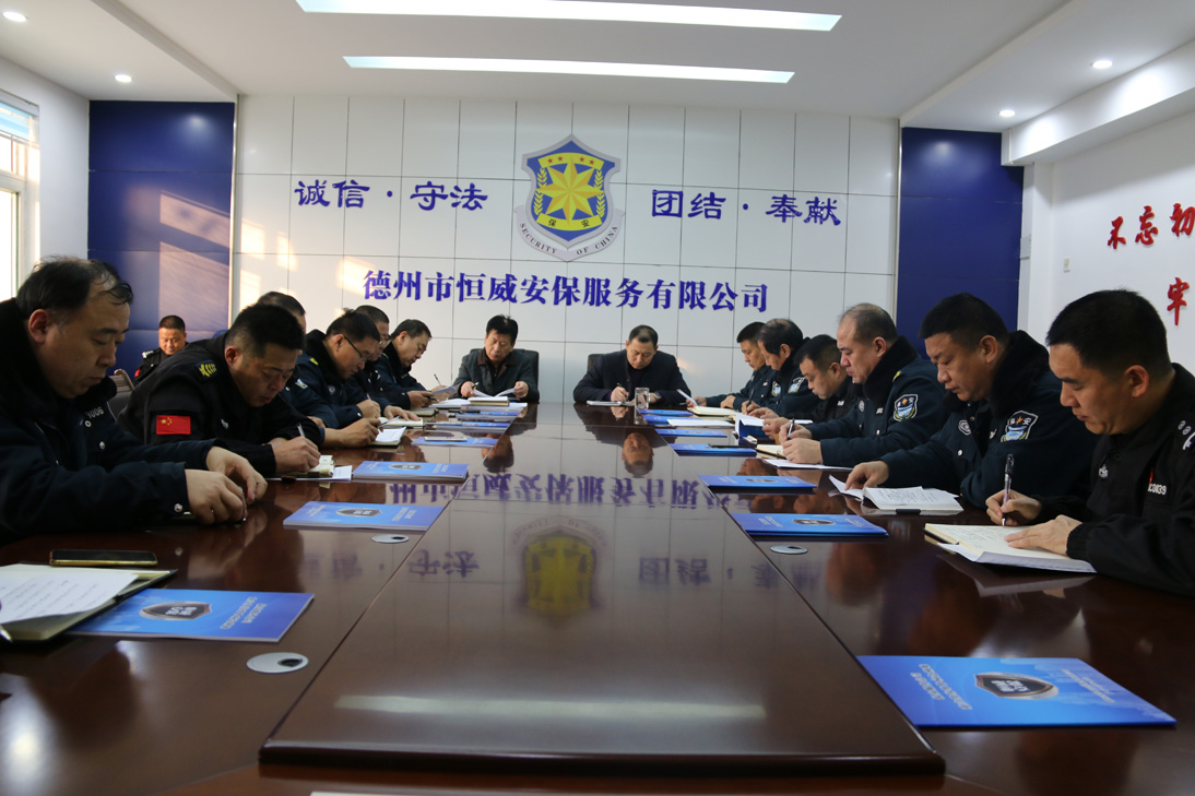 2019年12月13日上午,德州市恒威安保服務有限公司召開部門2019年工作總結及2020年工作計劃會議。各職能部門、業務公司負責人及部分中隊長以上人員參加會議。