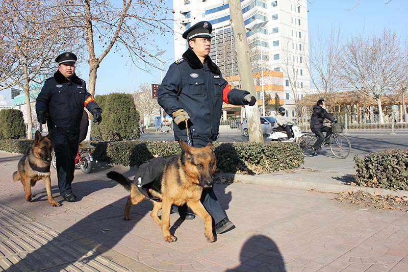 犬防大隊組以培養、訓練護衛犬服務客戶為主,現有專業訓犬員20名,專業防爆犬兩條,優良護衛犬30余條,與臨盤油田、德森集團、東營油田等單位簽訂長期服務合同,派駐護衛犬對其實行追蹤、警戒、巡邏等各種安全保衛任務,廣泛地應用到巡邏保衛工作。搜爆犬由公安部南京警犬研究所在警犬頸部植入編號芯片后備案配發,針對“黑火藥、TNT、硝酸”等爆炸物品的特殊氣味進行搜索示警,可承擔大型會議場所、交通公具、機場、車站等危爆物品的安檢工作,也可有效應對“炸彈威脅”等各類反恐行動。同時還提供犬只代訓服務,同時充分利用有利資源。